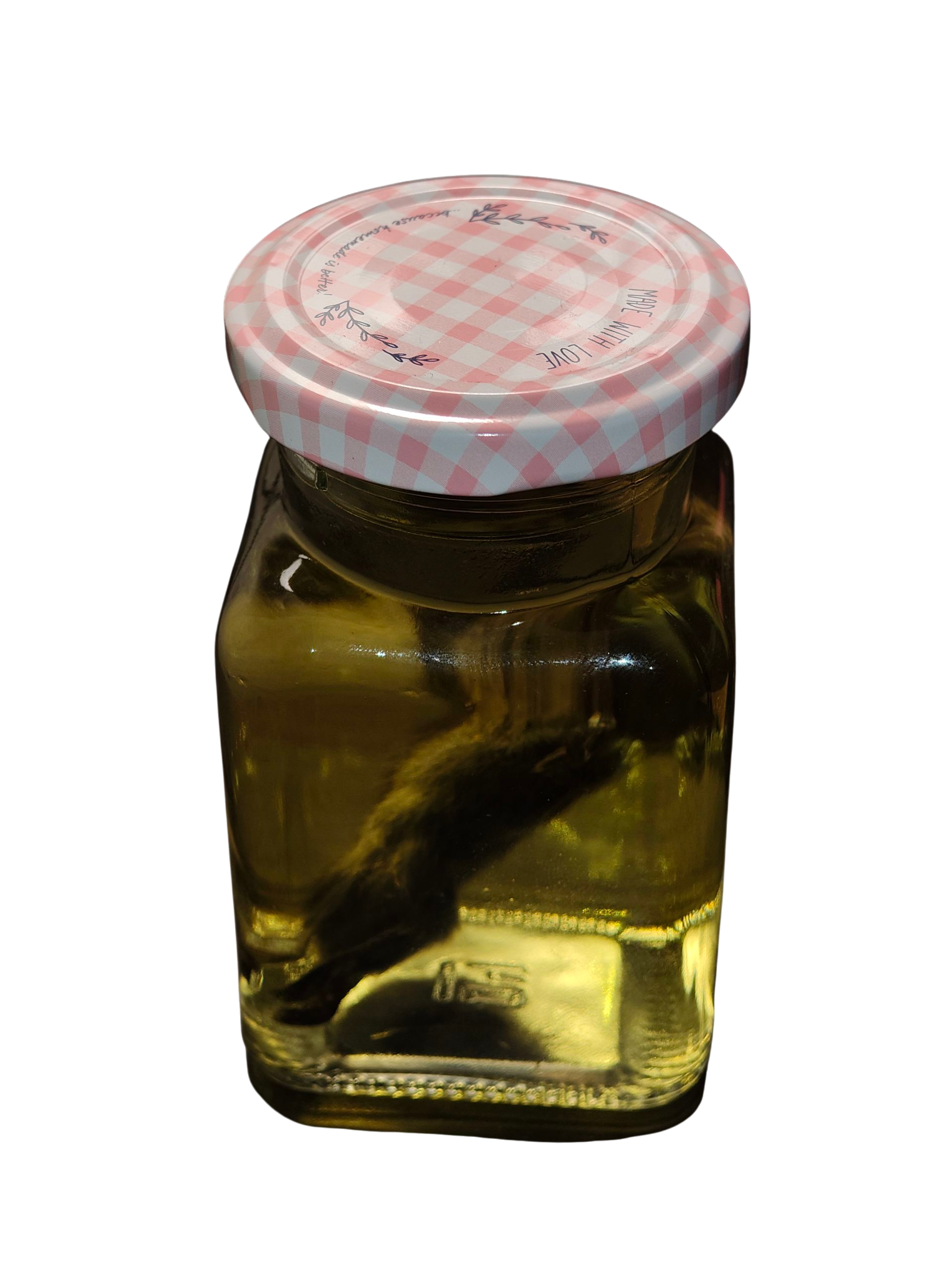 Bring home a unique curiosity with our Preserved Wild Mouse! This jarred wet specimen captures the wild essence of a mouse, making for an intriguing conversation starter. Perfect for animal lovers and collectors alike.